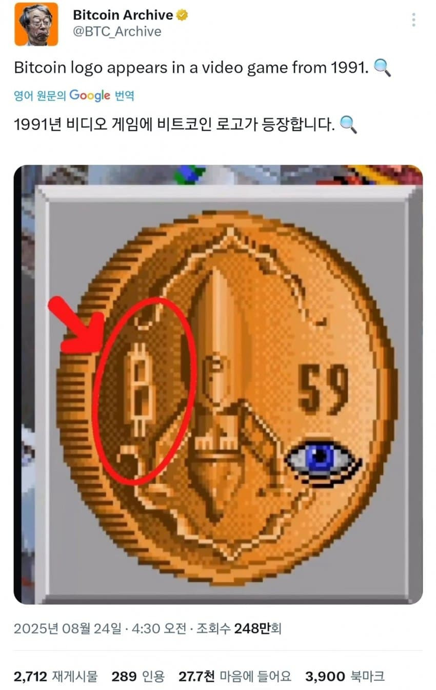 1991년 비디오 게임에 비트코인 로고가 등장했었다고 함