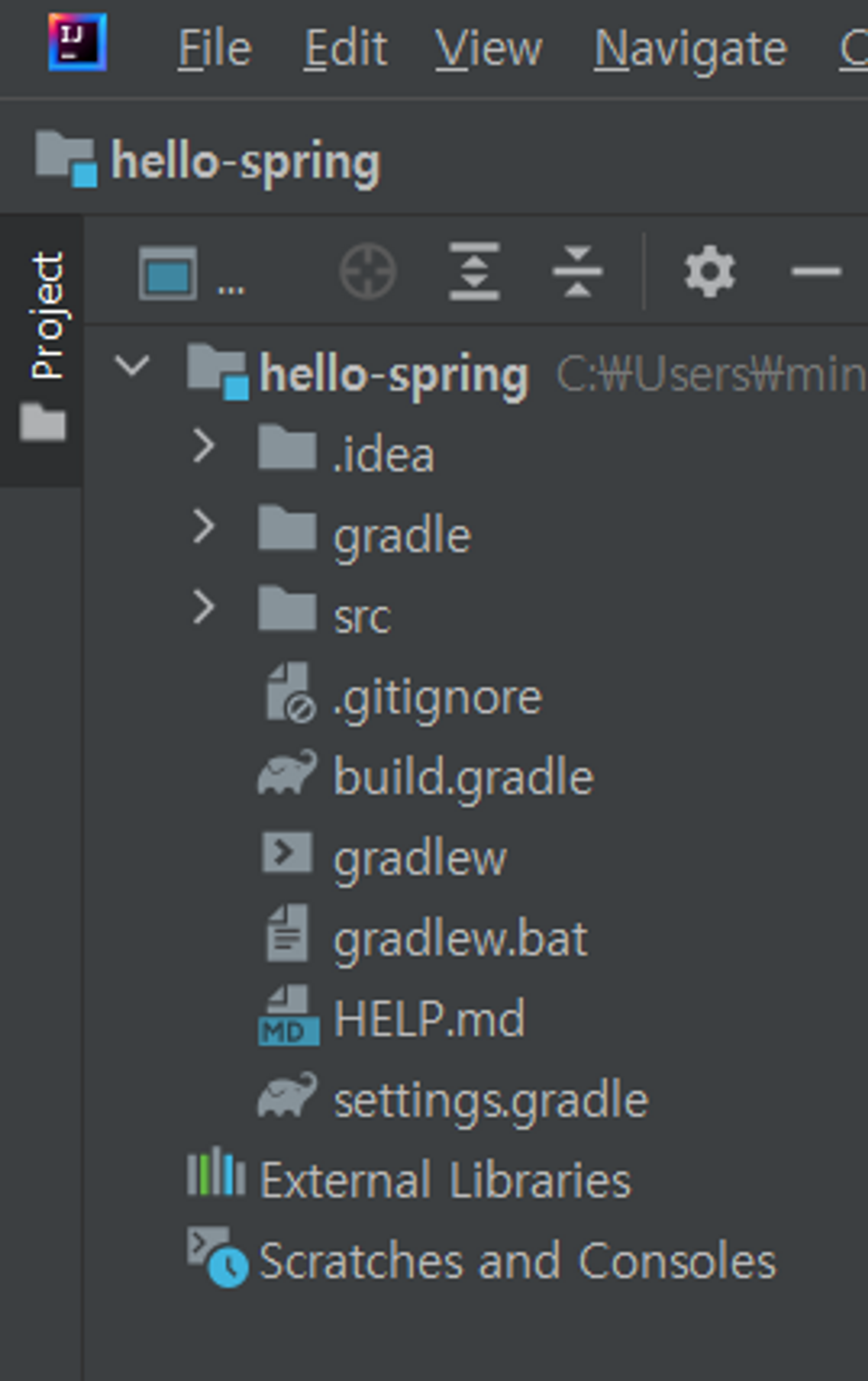 Project는 개발에 필요한 라이브러리를 불러와주고 빌드 라이프사이클까지 관리해주는 툴인 Gradle or Maven 둘 중에 하나를 골라서 사용하는데 일반적으로 Gradle을 사용해서 진행합니다.