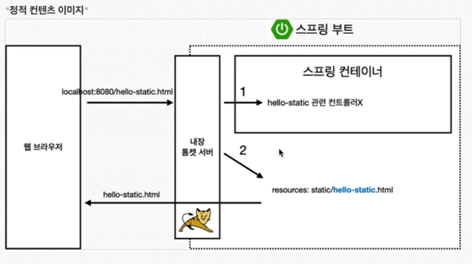 정적 컨텐츠는 웹 애플리케이션의 리소스로 사용되며, 웹 브라우저에 직접 제공됩니다. 일반적으로 정적 컨텐츠는 웹 애플리케이션의 클래스패스 내에 위치하며, 클라이언트 요청에 따라 해당 리소스가 서버로부터 전달되어 브라우저에 표시됩니다.